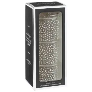 Printed Glass Stackable Storage Jars 3pc – White.